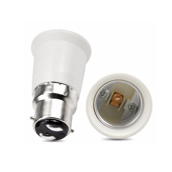 Portalámparas conversor de bayoneta (B22) a rosca estándar. Permite usar bombillas de rosca estándar en una lámpara o portalámparas de bayoneta (B22).