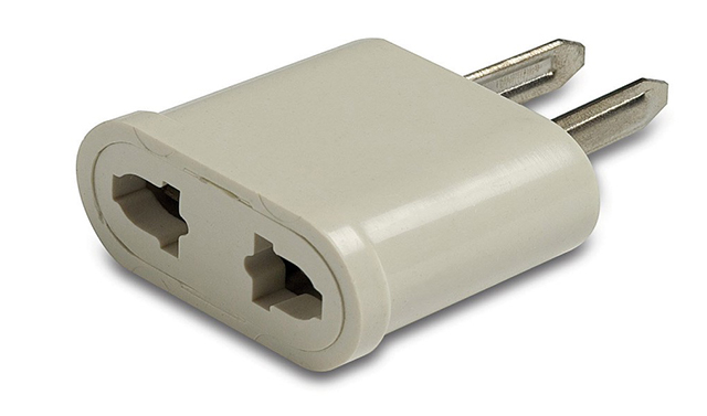 Permite enchufar aparatos con clavijas redondas (de espigas finas o gruesas) en enchufes para clavijas planas. El tipo de enchufe que se usa en varios países americanos.