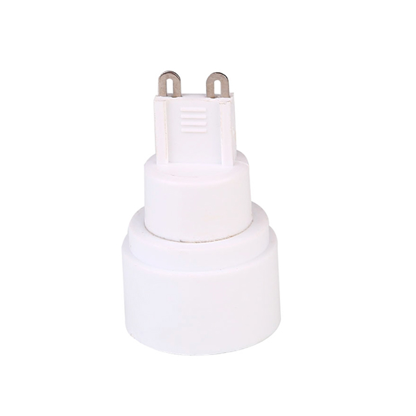 Adaptador para usar en lámparas de casquillo G9, normalmente utilizado por halógenas de 220V, a rosca fina E14. Permite usar bombillas de rosca E14 en la lámpara que antes usaba las G9.