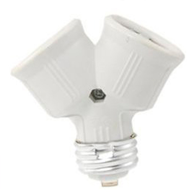 Adaptador de portalámparas para poder usar 2 bombillas de rosca grande (E27) en un mismo casquillo. Se rosca en lugar de la bombilla y permite utilizar 2 bombillas en el mismo portalámparas.