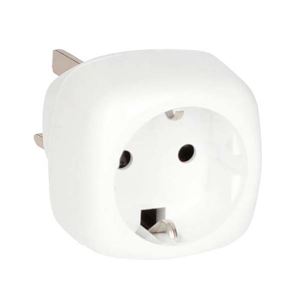 Permite enchufar aparatos con clavijas redondas (de espigas finas o gruesas) en enchufes para clavijas inglesas.