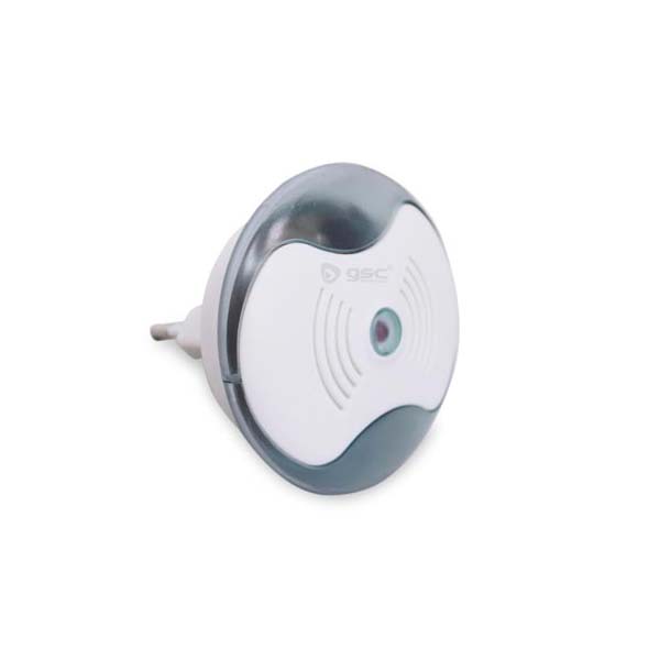 Ahuyentador de mosquitos por ultrasonidos que incorpora un luz de noche. Se enchufa y ya está! Sin necesidad de recambios. No es tóxico. Emite una frecuencia de 20 a 45KHz, no audible para los humanos, pero muy molesta para los mosquitos, ahuyentándolos.