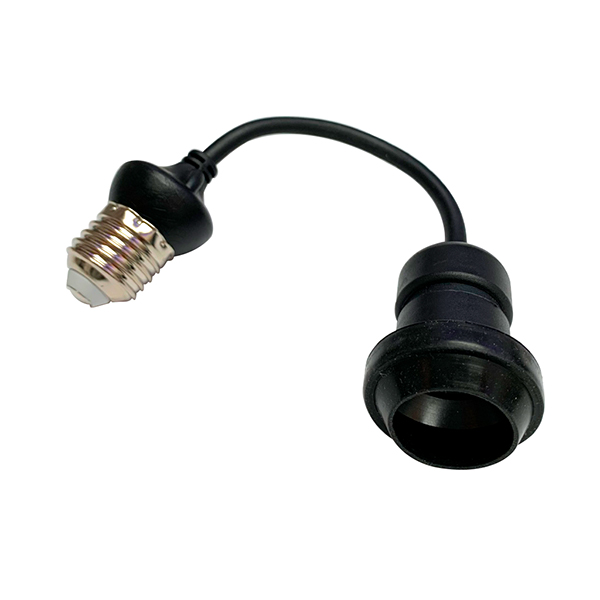 En un extremo tiene una rosca estándar E-27 (igual que una bombilla) para roscarlo en uno de los portalámparas de la guirnalda. Su cable es de 25cm de longitud y acaba en un casquillo con junta de goma para roscar una bombilla (E-27) de forma totalmente estanca.