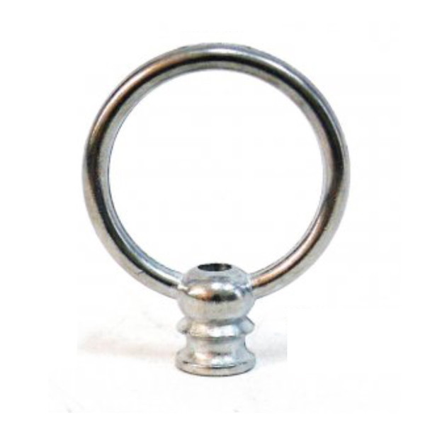 Argolla fabricada en metal (zamak) en acabado gris plateado. Con rosca hembra para roscarla al portalámparas o lámpara y poder colgar en el techo. Hueca en su interior para el paso del cable eléctrico. Paso de rosca 10/100 (tipo universal para lámparas)