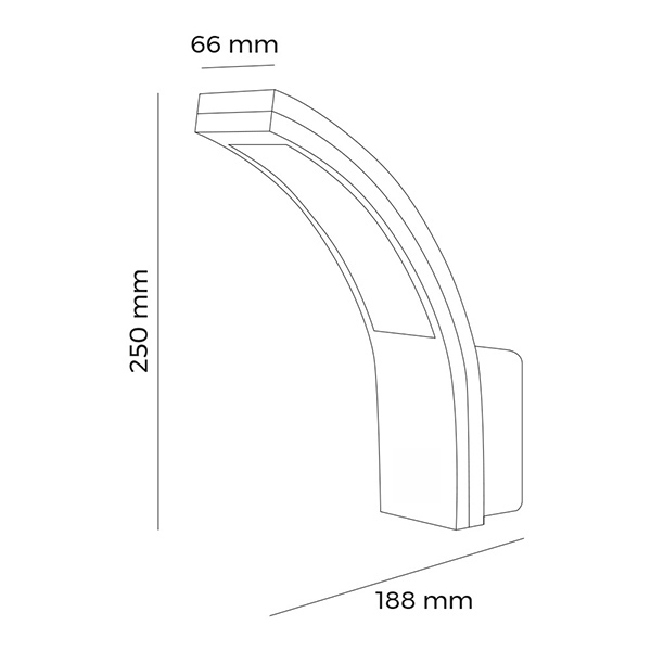 Bonito aplique LED, de diseño muy moderno. Brazo curvado de color gris antracita. Apto para uso exterior. Con un consumo de solo 15W consigue una alta iluminación. De luz fría (blanca).