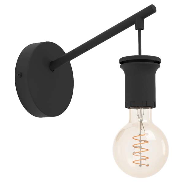 Combinado con bombillas decorativas de filamento son perfectos complementos para ambientes vintage, resaltando la belleza de este tipo de bombillas.Base de pared metálica y brazo de color negro.