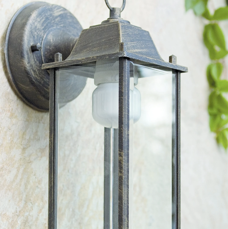 Portalámparas de rosca estándar (E-27). Incluye bombilla de bajo consumo de 15W (equivale a 75W), de luz fría (5000ºk). Recomendamos el uso de bombillas LED