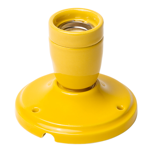 Lámpara de estilo retro fabricada en porcelana de color amarillo.  Se puede aplicar en pared, como aplique, o en techo, como plafón.