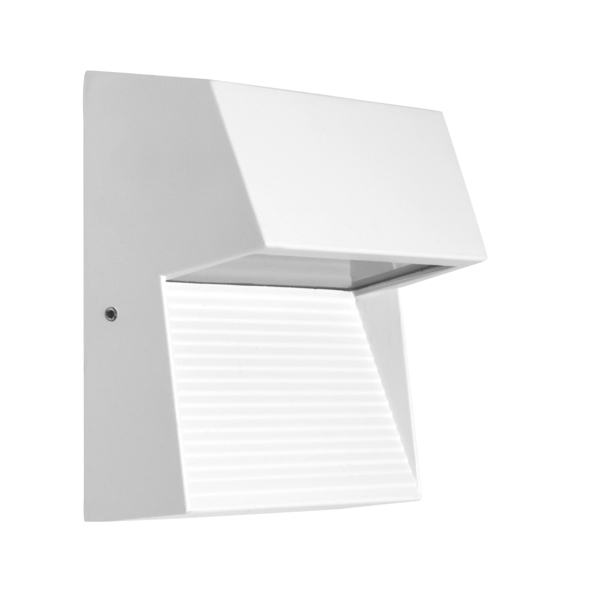 Aplique LED de metal en color blanco, cuadrado, de líneas rectas, aspecto contemporáneo. Su fuente de luz es un potente LED de solo 7W de consumo que proyecta una agradable luz indirecta de color blanco neutro (4000ºk). Valido para instalar en el exterior (grado de estanqueidad IP65). Ideal para balcones, terrazas, pasillos, etc.