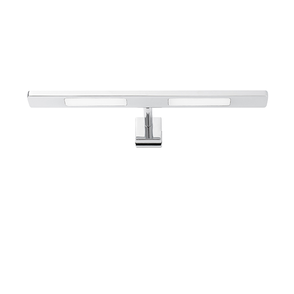 Aplique moderno con tecnología LED para iluminación del baño, fabricado en acero y aluminio con difusor de PMMA translúcido. La fuente de iluminación es un LED SMD de 5W (400 Lumens), de luz blanco neutro (4000ºK). Este aplique es ideal para colocar encima del espejo y conseguir una luz uniforme para el arreglo personal.