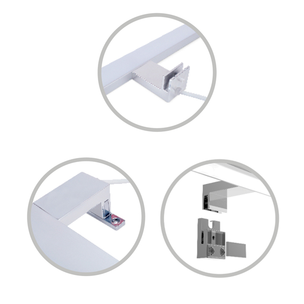 Aplique LED ideal para instalación en espejos, muebles o directamente a la pared en baños.