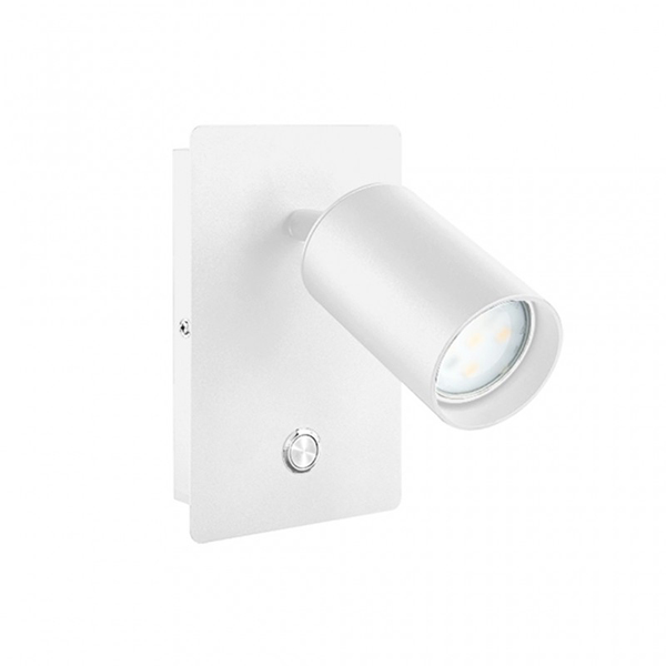 Aplique de pared foco para LED GU10. Fabricado en metal de color blanco. Incorpora un interruptor en su base. Es totalmente orientable para dirigir la luz al lugar deseado. Admite bombillas con casquillo GU-10. Complétalo con una de nuestras bombillas dicroicas LED GU10, escoge la potencia y el color de la luz deseado.
