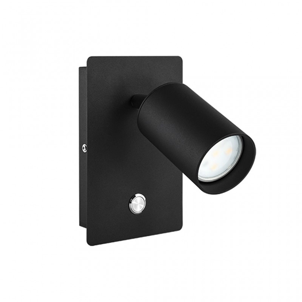 Aplique de pared foco para LED GU10. Fabricado en metal de color negro. Incorpora un interruptor en su base. Es totalmente orientable para dirigir la luz al lugar deseado. Admite bombillas con casquillo GU-10. Complétalo con una de nuestras bombillas dicroicas LED GU10, escoge la potencia y el color de la luz deseado.