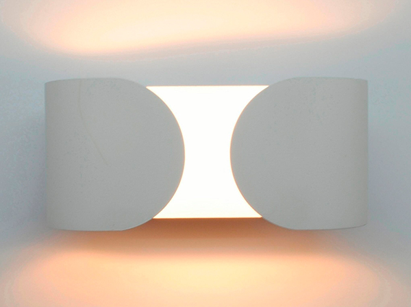 Aplique Led para fijación en pared. Fabricado en aluminio inyectado de color blanco. Su luz indirecta baña suavemente la pared en dos direcciones, evitando el deslumbramiento.