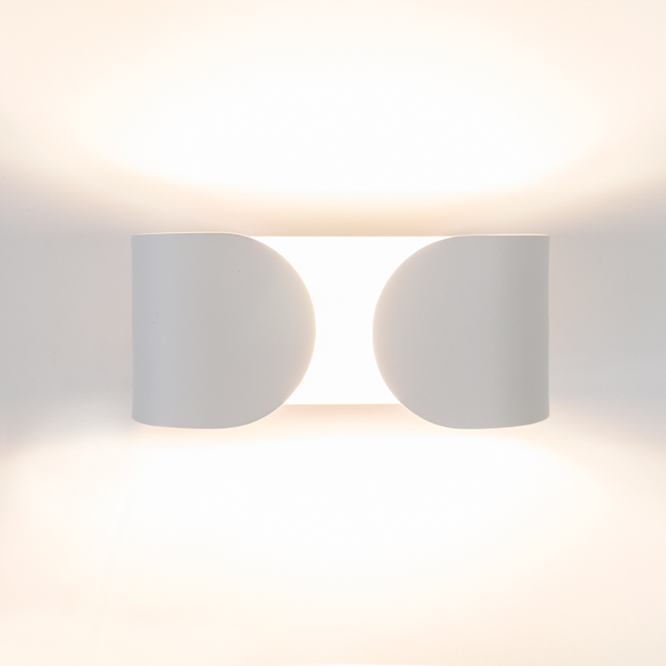 Aplique Led para fijación en pared. Fabricado en aluminio inyectado de color blanco. Su luz indirecta baña suavemente la pared en dos direcciones, evitando el deslumbramiento.