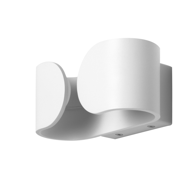 Aplique Led para fijación en pared. Fabricado en aluminio inyectado de color blanco. Su luz indirecta baña suavemente la pared en dos direcciones, evitando el deslumbramiento.