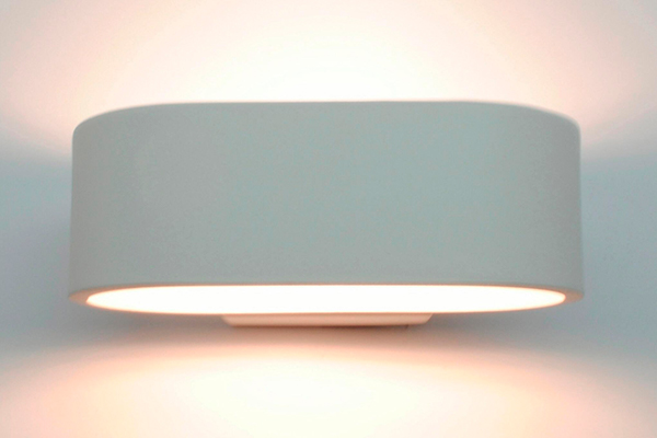 Aplique Led para fijación en pared. Fabricado en aluminio inyectado de color blanco. Su luz indirecta baña suavemente la pared en dos direcciones, evitando el deslumbramiento.