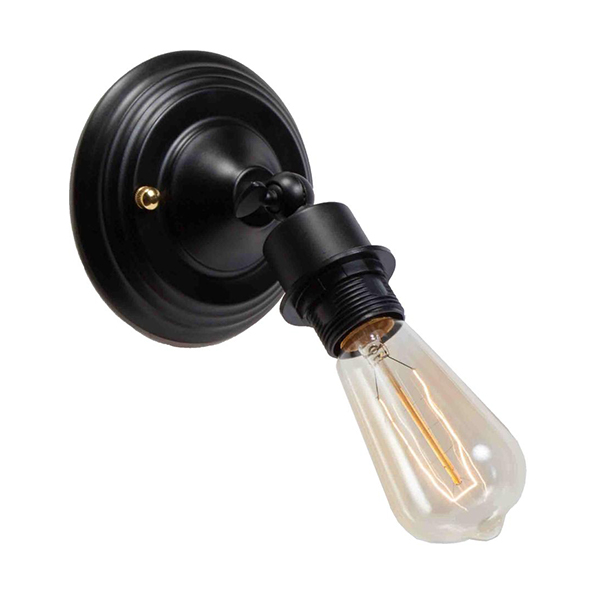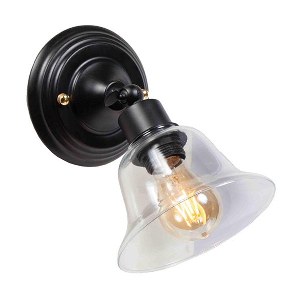 Aplique de pared decorativo de diseño clásico. Fabricado en metal de color negro con rótula para poder orientar el portalámparas.
