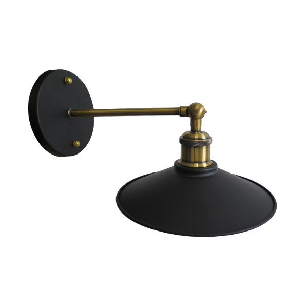 Aplique de pared con brazo articulado y pantalla metálica.