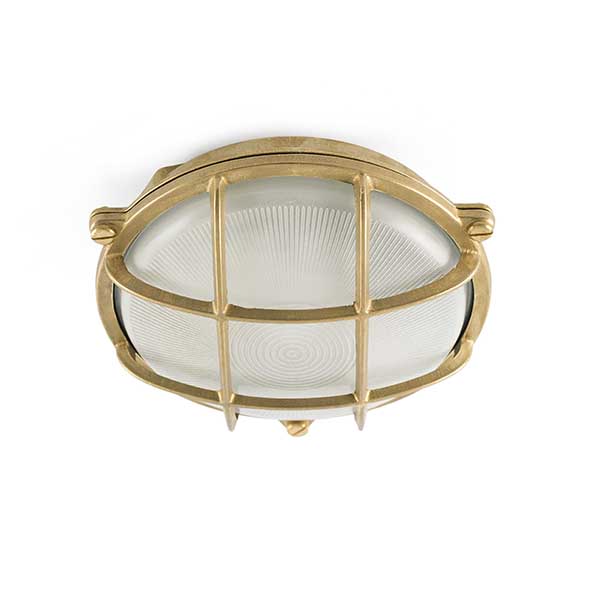 Precioso aplique de forma redonda con rejas protectoras sobre el cristal. Fabricado en latón. La calidad y la solidez del material con el que está fabricado lo hace muy adecuado para soportar la intemperie con la peor de las climatologías. Soporta de manera excepcional la lluvia gracias a su grado de estanqueidad extremo IP65. Ideal para iluminar jardines y terrazas sin temor al viento fuerte ni a la lluvia. Para instalar en techo o pared.