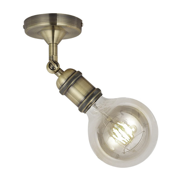 Aplique de pared o techo de estilo vintage, fabricado en metal acabado oro viejo. Incluye una rotula que permite orientarlo para enfocar la luz donde se desee. Para bombillas de casquillo E27, combina muy bien con bombillas transparentes de estilo vintage. Recomendamos el uso de bombillas decorativas LED