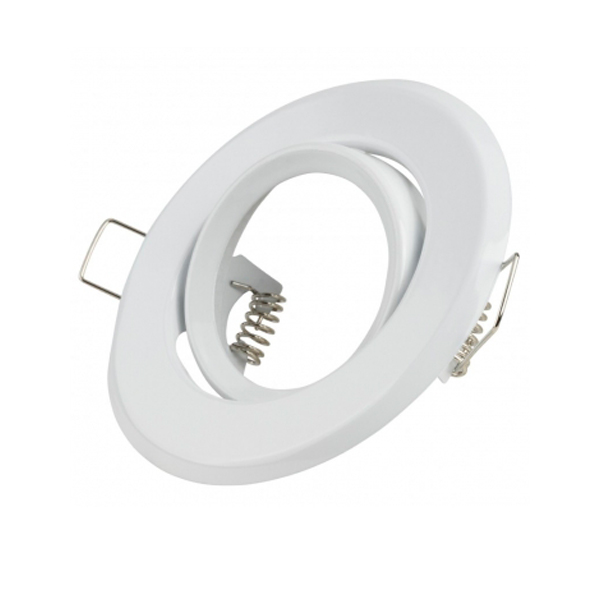 Aro basculante para bombillas dicroicas halógenas o LED de 50mm de diámetro. Para empotrar en falso techo. Aro de plancha en color blanco