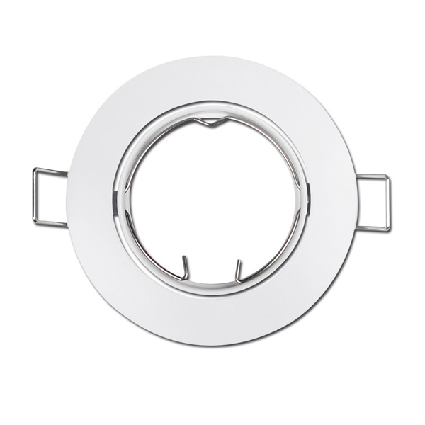 Aro basculante para bombillas dicroicas halógenas o LED de 50mm de diámetro. Para empotrar en falso techo. Aro de inyección zamak de color blanco.