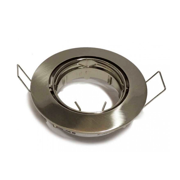 Aro basculante para bombillas dicroicas halógenas o LED de 50mm de diámetro. Para empotrar en falso techo. Aro de inyección zamak de color níquel mate.