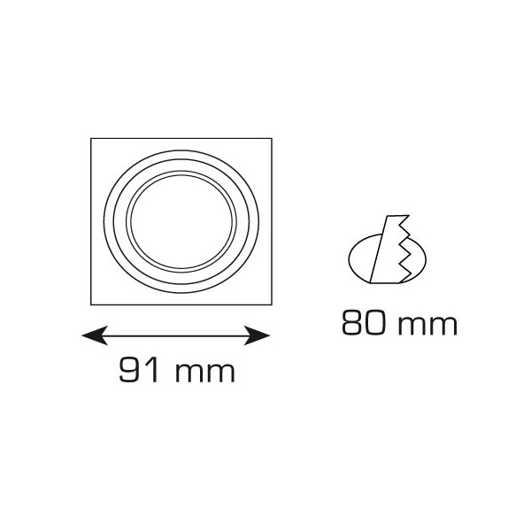 Aplique ojo de buey (spotlight). Aro basculante cuadrado fabricado en aluminio con acabado blanco mate. Instalación empotrable en falso techo. Para dicroica de 50mm halógena o LED. Recomendamos el uso de bombillas LED.