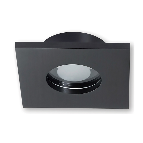 Aro de empotrar estanco, ideales para instalar en ambientes húmedos de interior y exterior, gracias a su protección IP65. Acompañados de alguna de nuestras bombillas dicroicas LED, serán el elemento perfecto para aquellos sitios donde se requiera una mayor seguridad, por ejemplo en baños, sobre bañeras y platos de ducha. Aro cuadrado de aluminio en acabado negro mate. Cristal mate en el centro para evitar deslumbramiento.