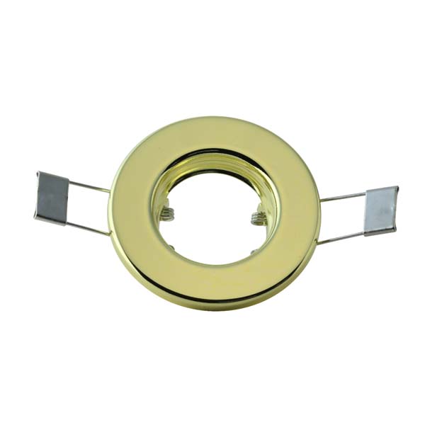 Aro fijo para bombillas dicroicas halógenas o LED de 50mm de diámetro. Para empotrar en falso techo. Fabricado en chapa de acero de color dorado.