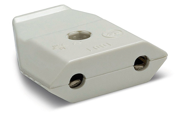 Base aérea bipolar (sin toma de tierra) de color blanca. Admite espigas finas (4mm) y gruesas (4,8mm).