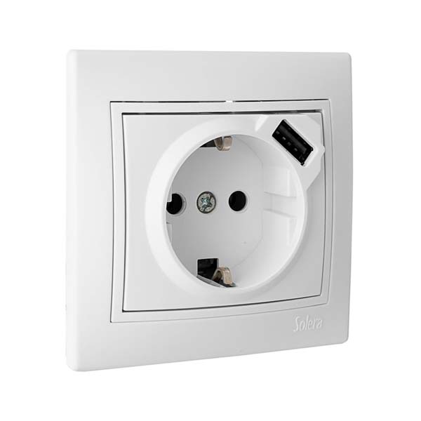 Enchufe para empotrar en cajetín estándar con 1 puerto USB. Permite cargar todos tus dispositivos USB (Smartphone, tablets, etc.) directamente en la base del enchufe sin necesidad de usar el cargador de cada dispositivo.