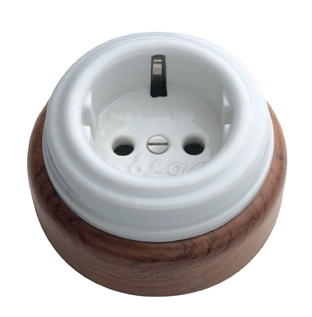 Base enchufe de porcelana y madera