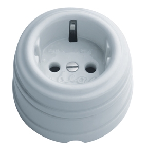 Se trata de una base de enchufe de porcelana antigua de original diseño, réplica de los antiguos enchufes de porcelana pero cumpliendo las actuales normativas de seguridad. Evocan ambientes rústicos. Encajan perfectamente en instalaciones retro. Acepta todo tipo de clavijas (finas y gruesas con T.T.). Fabricado en porcelana.