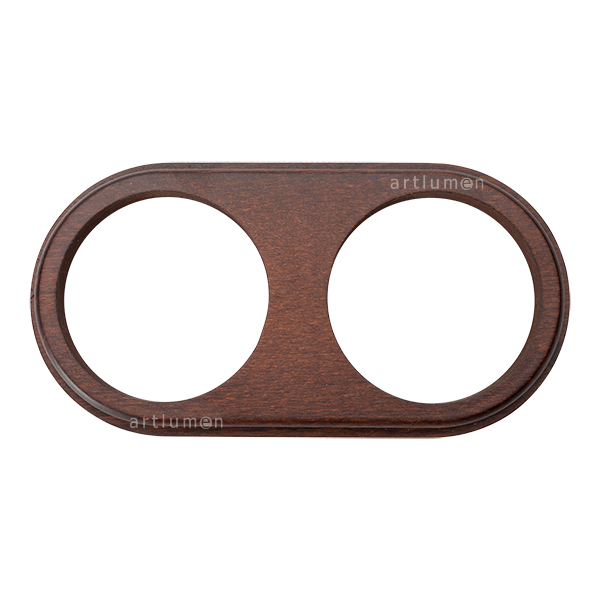 Base de madera doble para usar con dos mecanismos de la serie combinable. Fabricado en madera de haya barnizada en color castaño oscuro. Marco de madera torneado a mano. Su diseño de líneas clásicas y sobrias realzan la porcelana con la que se combina.
