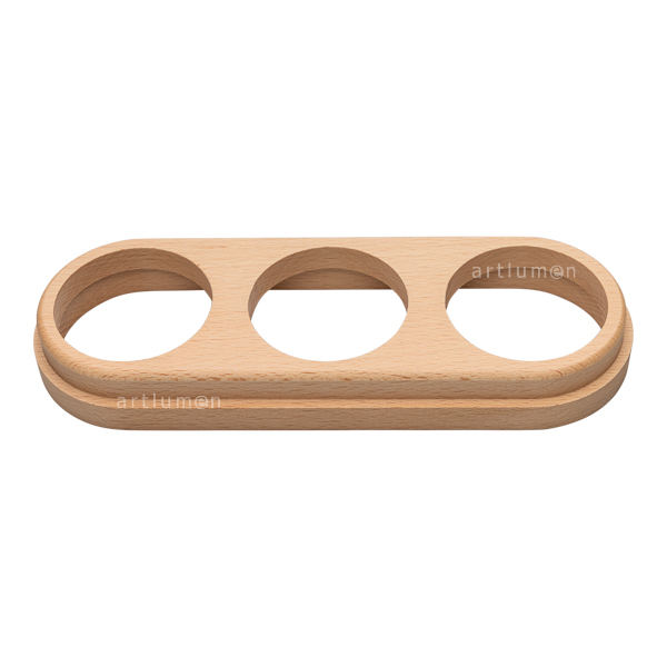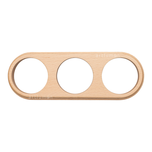 Base de madera triple para usar con tres mecanismos de la serie combinable. Fabricado en madera de haya y barnizada en acabado natural. Marco de madera torneado a mano. Su diseño de líneas clásicas y sobrias realzan la porcelana con la que se combina.