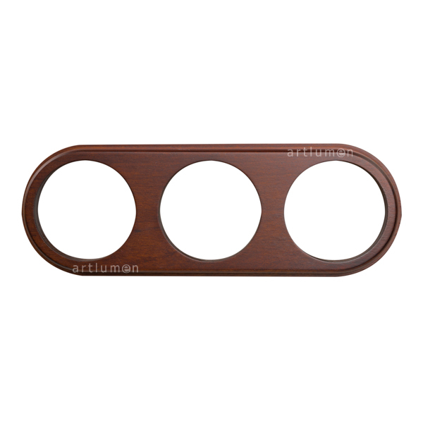 Base de madera triple para usar con tres mecanismos de la serie combinable. Fabricado en madera de haya barnizada en color castaño oscuro. Marco de madera torneado a mano. Su diseño de líneas clásicas y sobrias realzan la porcelana con la que se combina.