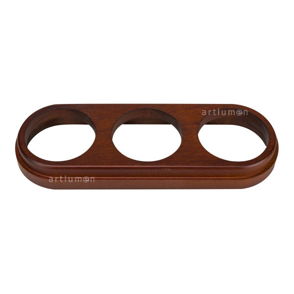 Base de madera triple para usar con tres mecanismos de la serie combinable. Fabricado en madera de haya barnizada en color castaño oscuro. Marco de madera torneado a mano. Su diseño de líneas clásicas y sobrias realzan la porcelana con la que se combina.