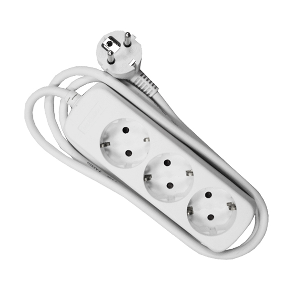 Sirve de alargo y de “ladrón” para conectar hasta 3 aparatos eléctricos.