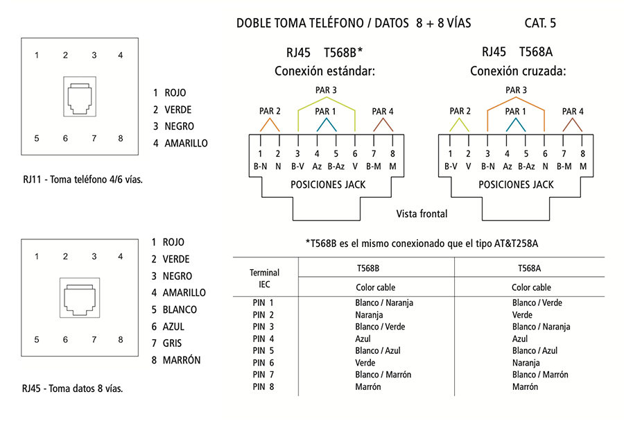 Mecanismos homologados que cumplen las vigentes normas europeas de seguridad. Toma RJ-11 (4/6 vías). Tornillería en acero inoxidable y tacos incluidos.