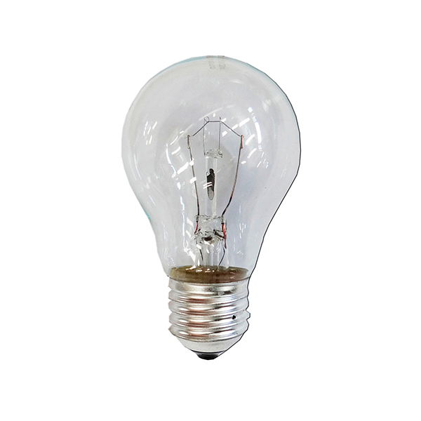 Bombilla incandescente (de filamento). Formato estándar de 100W con cristal transparente. De rosca estándar (E-27)