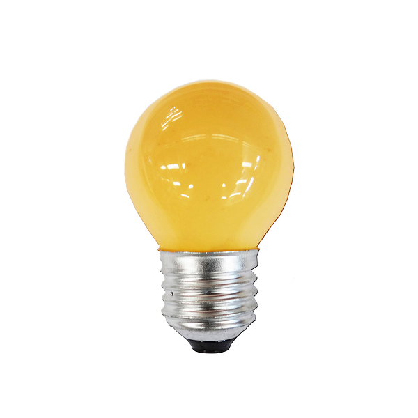 Bombilla esférica incandescente, de color amarillo, para casquillo E-27.