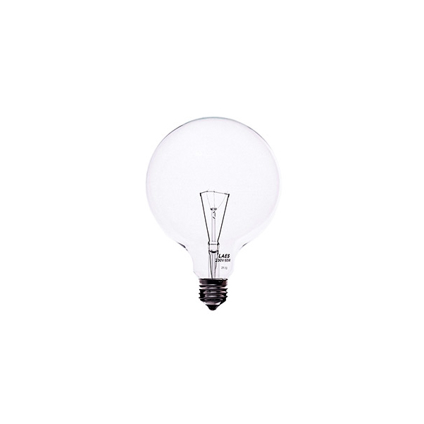 Bombilla incandescente en forma de globo de 80mm de diámetro, de cristal transparente.