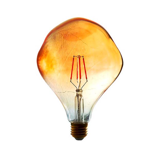 Globo LED decorativo de caras desiguales, simulando deformidad. Es una bombilla con filamentos LED, y de diseño Vintage, fabricada en cristal dorado, que la convierten en un elemento decorativo.