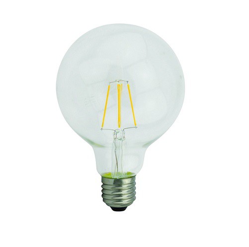 Bombilla decorativa simulando a las antiguas bombillas incandescentes. Decoran, crean ambientes, iluminan. Globo de cristal transparente, de diámetro 125mm. Filamentos de micro-leds con una alta eficacia energética (reduce el consumo eléctrico hasta un 85%). Solo consumen 6W con una equivalencia de unos 80W de las antiguas bombillas. Rosca estándar (E-27)