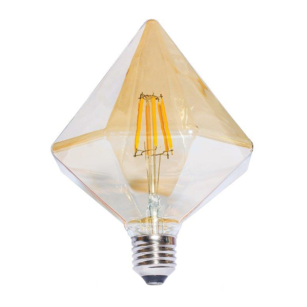Bombilla de filamentos led con forma de diamante y cristal ámbar. Muy decorativa, ideal para crear un entorno cálido, agradable y relajante. Combínala con uno de nuestros colgantes donde quede la bombilla vista para destacar toda su belleza.
