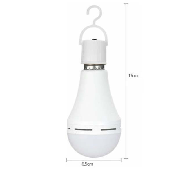 Bombilla LED de rosca estándar (E-27) que actúa como lámpara de emergencia. Aplicable para hogares, tiendas, fiestas, etc.