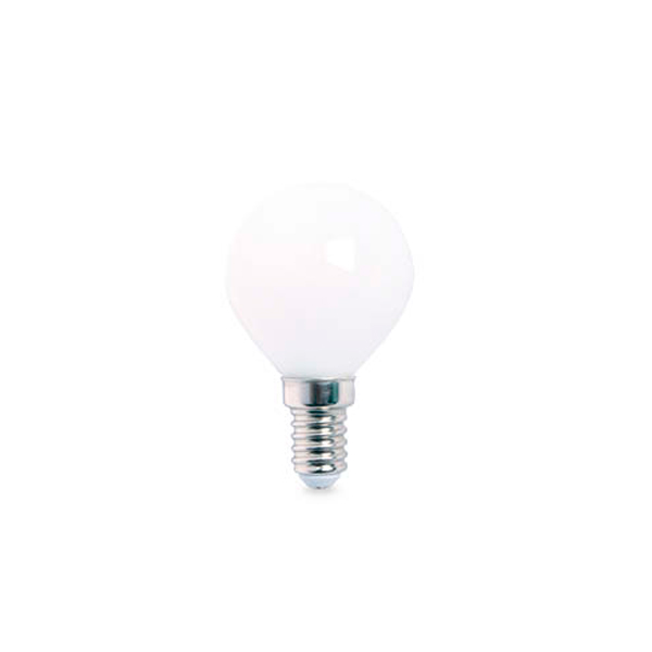 Bombilla decorativa esférica Todo su cuerpo es de cristal opal (sin partes de plástico), confiriéndole un bonito aspecto, ideal para lámparas con las bombillas vistas.