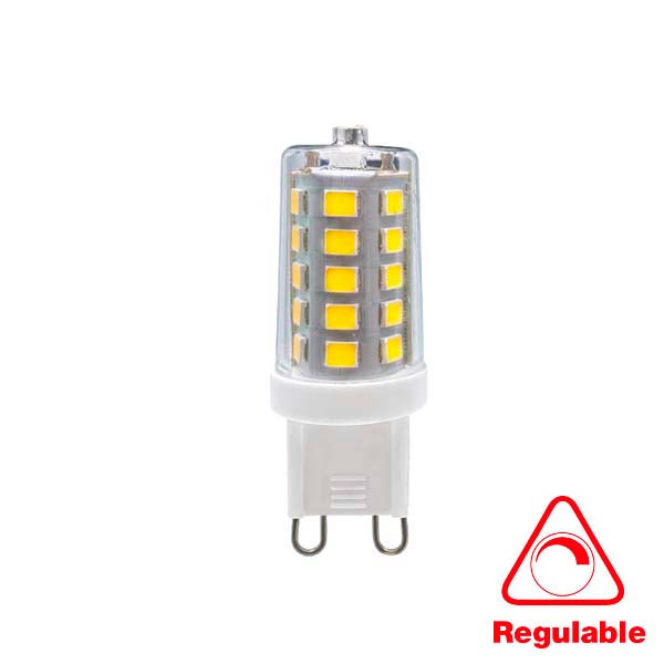 Bombilla LED para substituir a las halógenas de casquillo G-9. Con solo 3W de consumo, equivale a unos 30W (260 Lumens). De luz cálida (3200ºk). Temperatura de color recomendada para crear ambientes acogedores en zonas de descanso (comedor, habitación…) Similar a las halógenas que substituye.